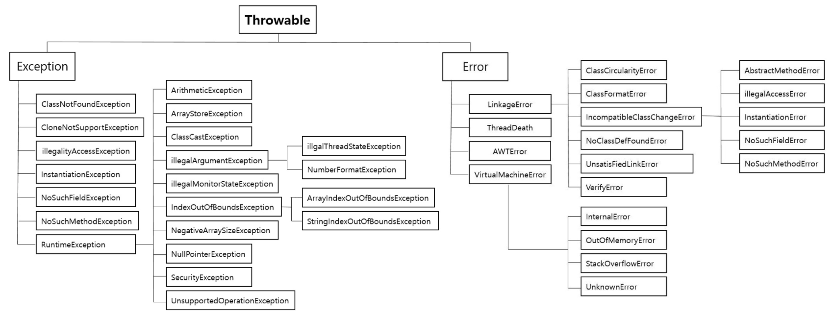 Java์์๋ ์ด๋ฌํ ์์ธ์ฒ๋ฆฌ๋ฅผ ์ํ ํด๋์ค๊ฐ ๊ตฌํ๋์ด์๋ค.